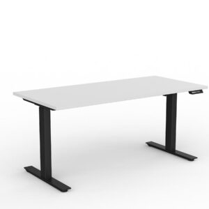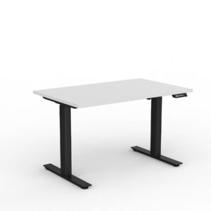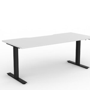 OL Agile Electric Motor High Adjustable Straight Desk in White top with Black Base