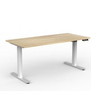 OL Agile Electric Motor High Adjustable Straight Desk in New Oak top with White Base