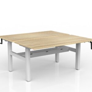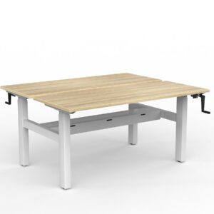 OL Agile Winder Height Adjustable Shared Desk – Oak Top with White Frame