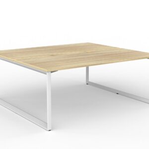 Ol Anvil Desk 2-User Double Sided Workspace with Breathe Screen & White Frame Oak Top
