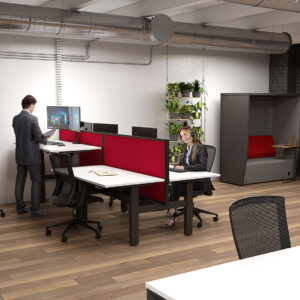 OL Studio Screen with Ducting for Agile Shared Desk – Breath Fabric with Black Frame