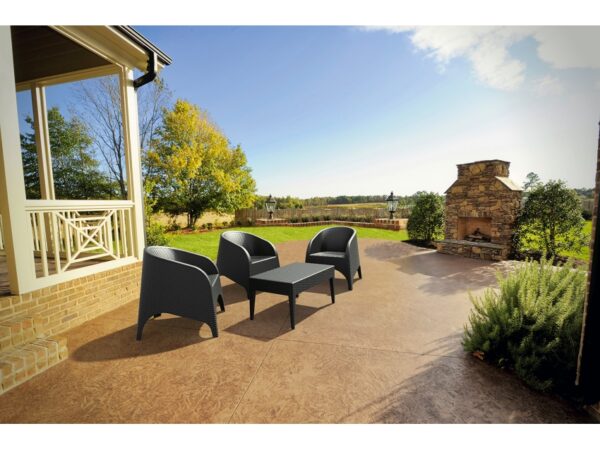 Both the Tequila Lounge Coffee Table and Aruba Tub Chair are the injection moulded resin table and chair, the non-metalic frame will never unravel, rust or decay. Reinforced with glass fibre to strengthen the legs and boost the weight capacity. They are designed for outdoor use, UV stable and weather proof, it will not fade or go brittle in Australia’s harsh outdoor conditions. Strong yet lightweight, this table will add class to your venue. It’s sleek profile is pleasant to the eye so these table and chair are as charming as it is functional. Very easy to clean, just hose it down.