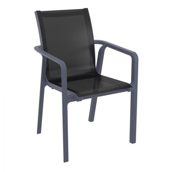 The Pacific Armchair with Batyline fabric from Serge Ferrari, multi-filament, high-tenacity polyester yarn, solution-dyed protective sheath and biaxiale tensioning for extreme tension resistance. This chair is made from a weather-proof, UV-protected resin reinforced by glass fiber that stands up to our Australian summer showers and strong sun, making this armchair the ideal, worry-free addition to your outdoor seating area. This versatile armchair pairs perfectly with our Pacific Sunlounger ,as well as a wide range of other outdoor tables. For domestic or commercial use.