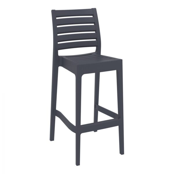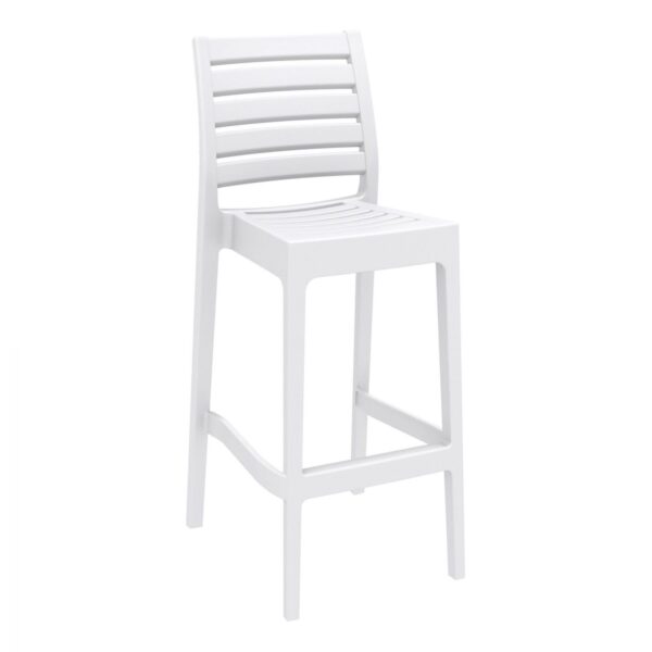 The Ares Barstool by Siesta is no ordinary plastic Stool. It’s extraordinary strength is due to the entire stool being one-piece injection moulded polypropylene, the legs reinforced with glass fibre for even more stability. The plastic is packed with UV stabiliser, so this stool will not fade or go brittle even in the sunniest weather conditions. Siesta’s Ares Barstool is built to last in busy commercial venues, indoor or outdoor.