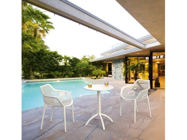 The Air XL Armchair by Siesta is no ordinary plastic chair. It’s extraordinary strength is due to the entire chair being one-piece injection moulded polypropylene, the legs reinforced with glass fibre for even more stability. The plastic is packed with UV stabiliser, so this chair will not fade or go brittle even in the sunniest weather conditions. Siesta’s Air XL Armchair is built to last in busy commercial venues, indoor or outdoor.