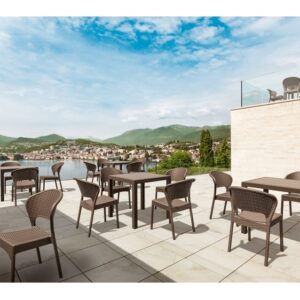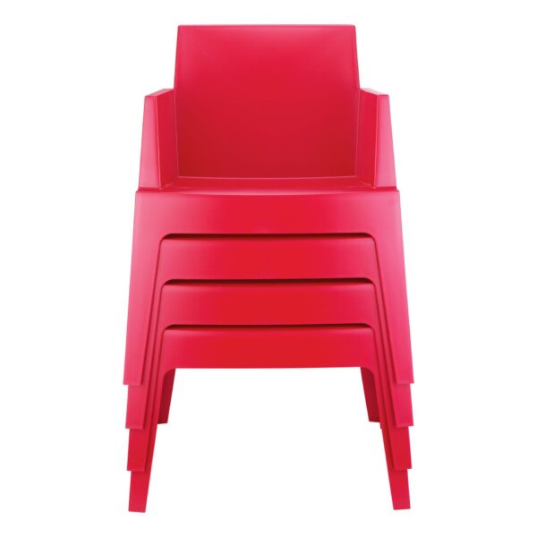 The Box Chair by Siesta is no ordinary plastic chair. It’s extraordinary strength is due to the entire chair being one-piece injection moulded polypropylene. The plastic is packed with UV stabiliser, so this chair will not fade or go brittle even in the sunniest weather conditions. Siesta’s Box Chair is built to last in busy commercial venues, indoor or outdoor.