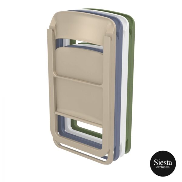 Dream folding chair is produced with a single injection of polypropylene reinforced with glass fibre obtained by means of the latest generation of air moulding technology with neutral tones. For indoor and outdoor use.