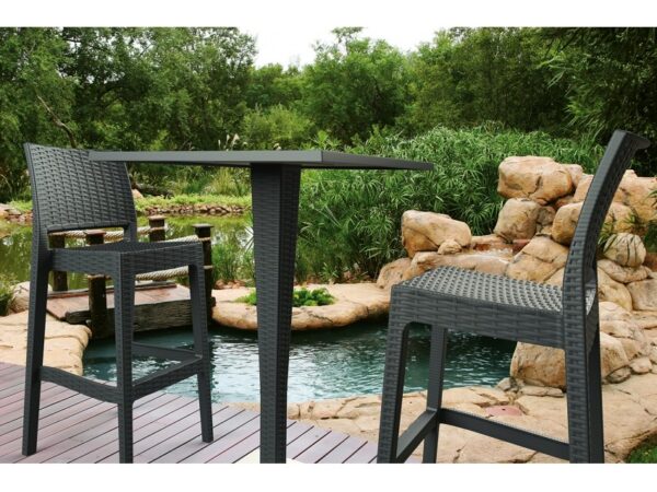 The Jamaica Barstool is an injection moulded resin chair, the non-metalic frame will never unravel, rust or decay, with rattan look seat and back. Reinforced with glass fibre to strengthen the legs and boost the weight capacity. The Jamaica Barstool is stackable, designed for outdoor use, UV stable and weather proof, it will not fade or go brittle in Australia’s harsh outdoor conditions. Strong yet lightweight, this stool will add class to your venue. It’s sleek profile is pleasant to the eye so this stool is as charming as it is functional. Very easy to clean, just hose it down.