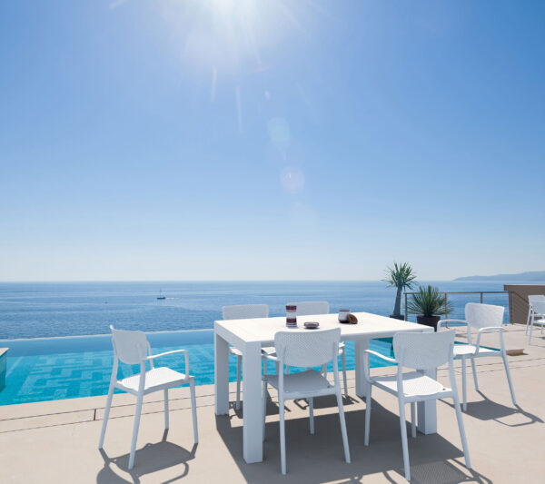 Loft armchair is produced with a single injection of polypropylene reinforced with glass fibre obtained by means of the latest generation of air moulding technology with neutral tones. For indoor and outdoor use.