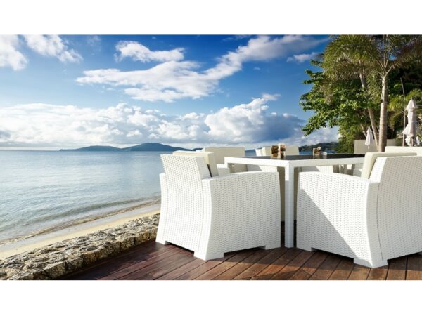 The Monaco lounge Armchair is an injection moulded resin chair, the non-metallic frame will never unravel, rust or decay, with rattan look seat and back. The Monaco Lounge Armchair is reinforced with glass fibre to give it impressive strength and boost the weight capacity. The Monaco Lounge Armchair features an easy assembly design that is suitable for indoor or outdoor use. The Monaco Lounge Armchair is UV stable and weather proof, it will not fade or go brittle in Australia’s harsh outdoor conditions. Strong yet lightweight, this Armchair will add class to any venue. It’s sleek and comfortable profile is pleasant to the eye so this chair is as charming as it is functional. Very easy to clean, just hose it down.
