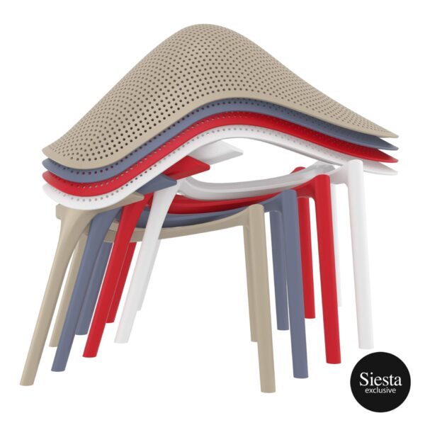 The Sky Lounge by Siesta is no ordinary plastic chair. It’s extraordinary strength is due to the entire chair being one-piece injection moulded polypropylene, the legs reinforced with glass fibre for even more stability. The plastic is packed with UV stabiliser, so this chair will not fade or go brittle even in the sunniest weather conditions. Siesta’s Sky Lounge is built to last in busy commercial venues, indoor or outdoor.