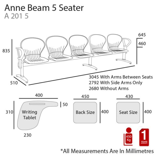 | Beam Seating | 2 Seater, 3 Seater, 4 Seater, 5 Seater |