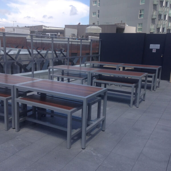 Tags: Bar Table, Hospitality Table, Indoor Bar Table, Indoor Table, Indoor Table with Steel Frame and Timber Slats, Powder Coated Steel Frame and Timber Slats, Steel Framed and Timber Slats Table