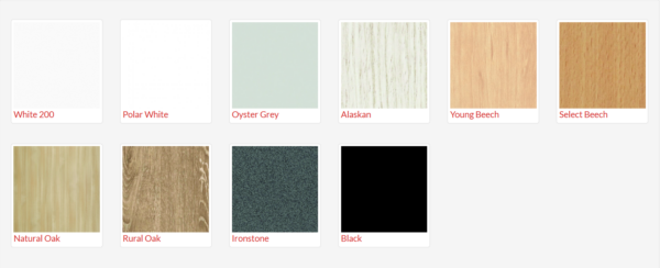 | Colour | Alaskan, Oyster Grey, Polar White, Select Beech, Titanium White, Young Beech |