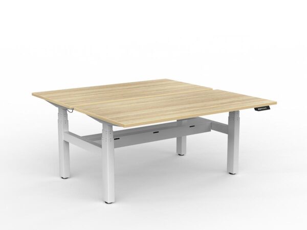 OL Agile Double Motor Electric Height Adjustable Shared Desk – Oak Top with White Frame