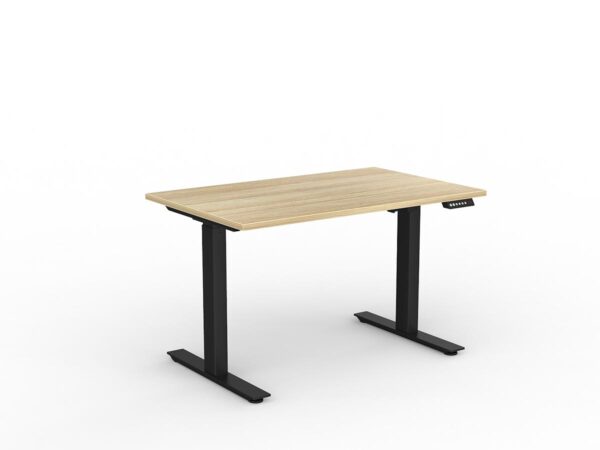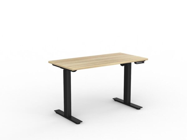 OL Agile Electric Motor High Adjustable Straight Desk in New Oak top with Black Base