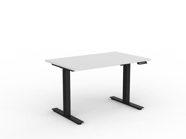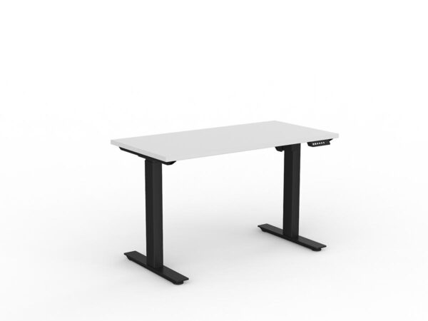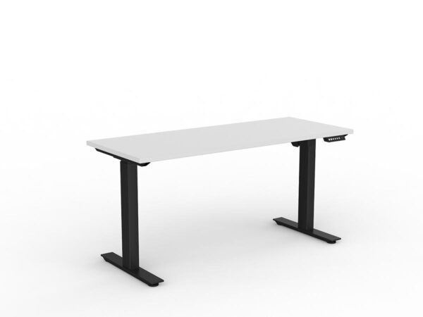 OL Agile Electric Motor High Adjustable Straight Desk in White top with Black Base