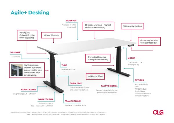 - Agile individual layout with worktop of 1200 – 1800mm x 600 – 800mm