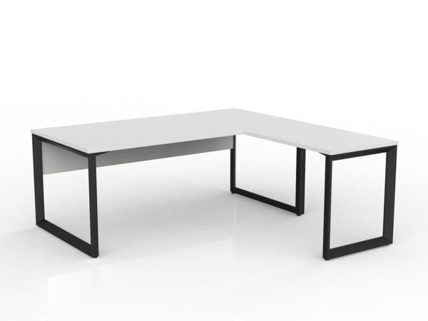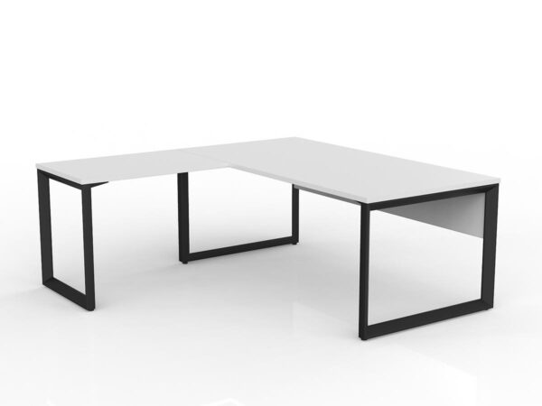 OL Anvil Desk with Return and Modesty – White Top with Black Frame