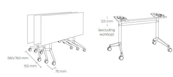 Modulus flip table frames are the industry leaders. Strong, AFRDI certified and flexible. The polished foot is excellent for training spaces that have dirty workwear – meaning a hardy, easy clean finish in all the right places.
