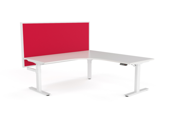 Studio screen to fit Agile individual desk. Black powdercoated 50mm frame and lightweight, pinnable core with Splice fabric. Includes desk hung screen brackets. Optional in-screen ducting.