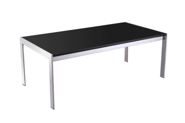 The Glass coffee table comes with black tempered glass and a recessed chrome frame.