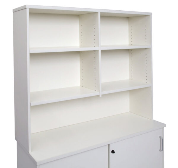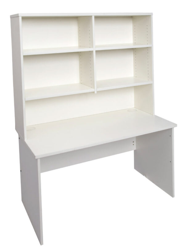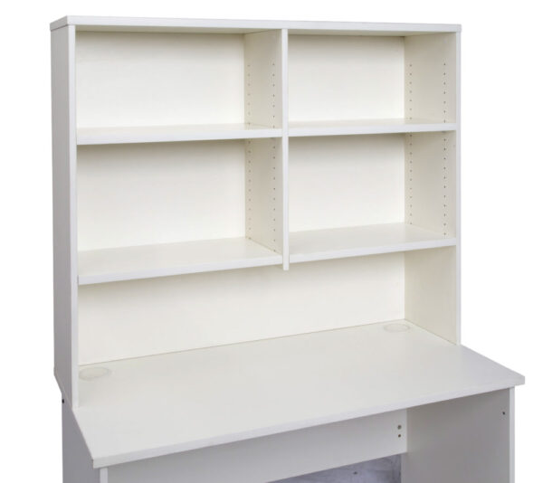 The hutch comes with adjustable shelves and a space for a monitor under the shelves to maximise desk space, and clear clutter from the desk top.
