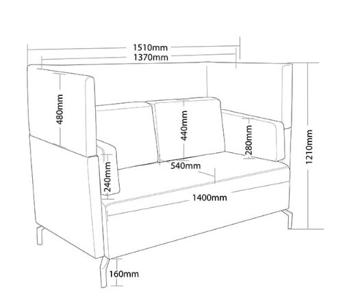 ST Shell Fabric Upholstered High Back 2 Seater Lounge