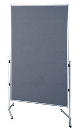 Fixed frame double sided pinboard. Powder coated steel stand with snap in fittings. All Pinboards made with aluminium frame and in Autex velour fabric hook and loop and pin receptive.