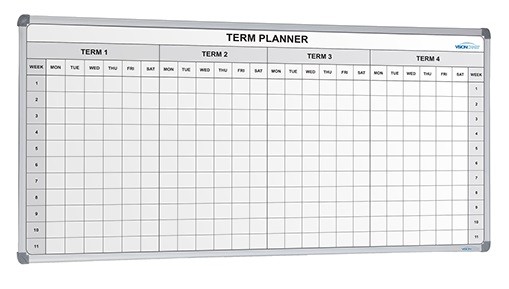 No school can be with out one. 4 school terms divided into 11 weeks for quick and easy reference. Laminated graphic surface with permanent lines. 3 Sizes available.