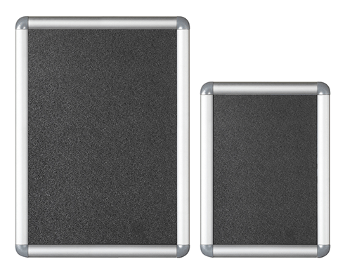 Snap frame poster holders available in A4, A3, A2 and A1 sizes. Cases feature strong 25mm alloy frame with rounded light grey moulded corners. Glare free PVC clear front cover lenses helps protects artwork from harsh reflection and general wear. Easy to change inserts and perfect for presenting information with a smart professional look.