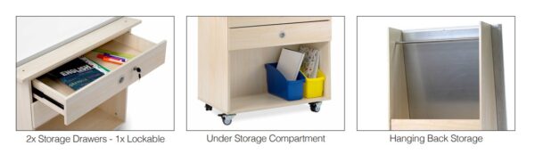 A versatile, mobile storage and teaching centre, perfect for small group literacy sessions and organising resources.Constructed from structural MDF with attractive White Oak wood laminate, the Read, Write & Store Centre is the ideal mobile learning hub. An all-in-one storage a communication unit for Big Book Teaching sessions.